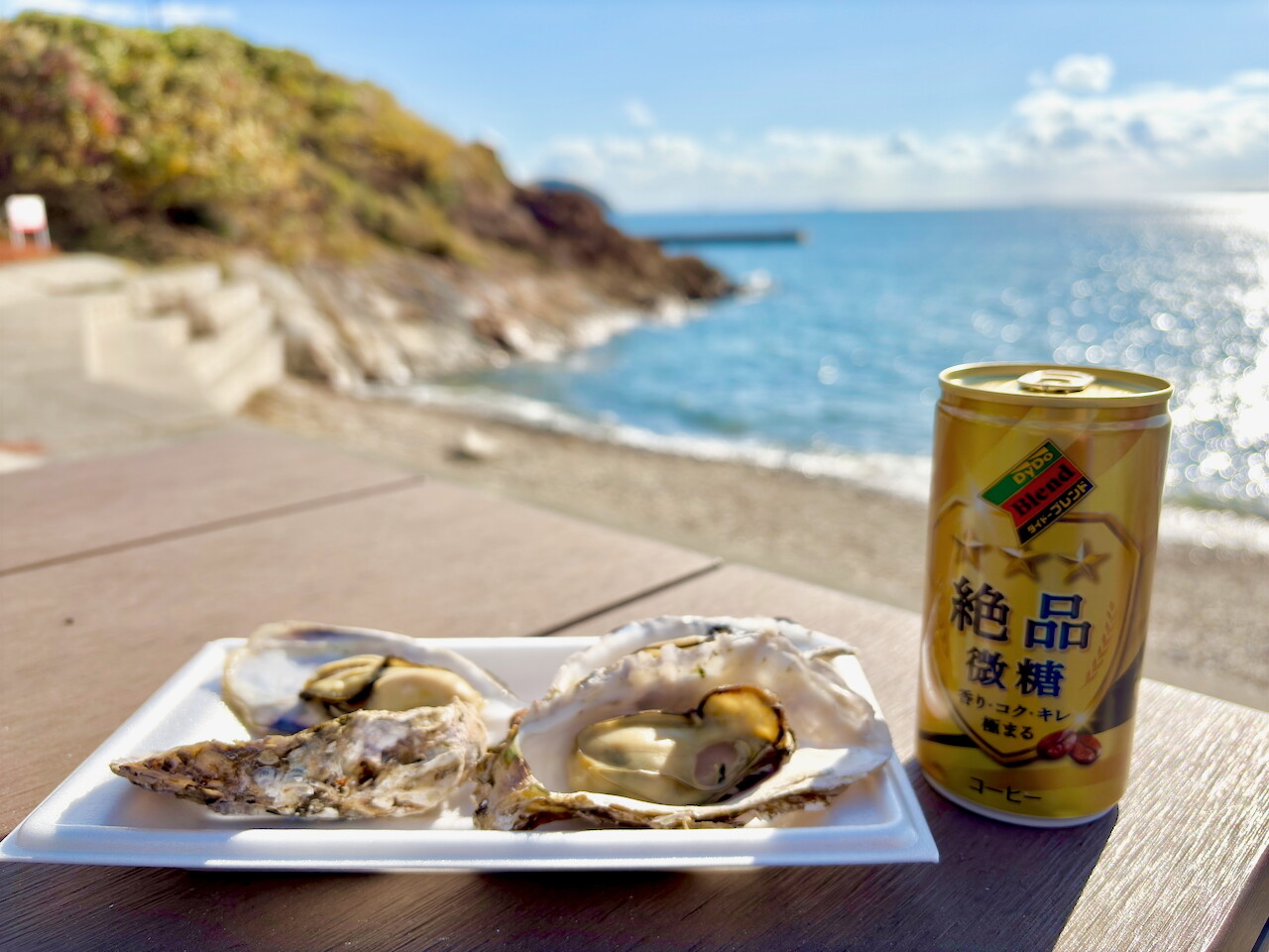 美味しい牡蠣を頂いていると、