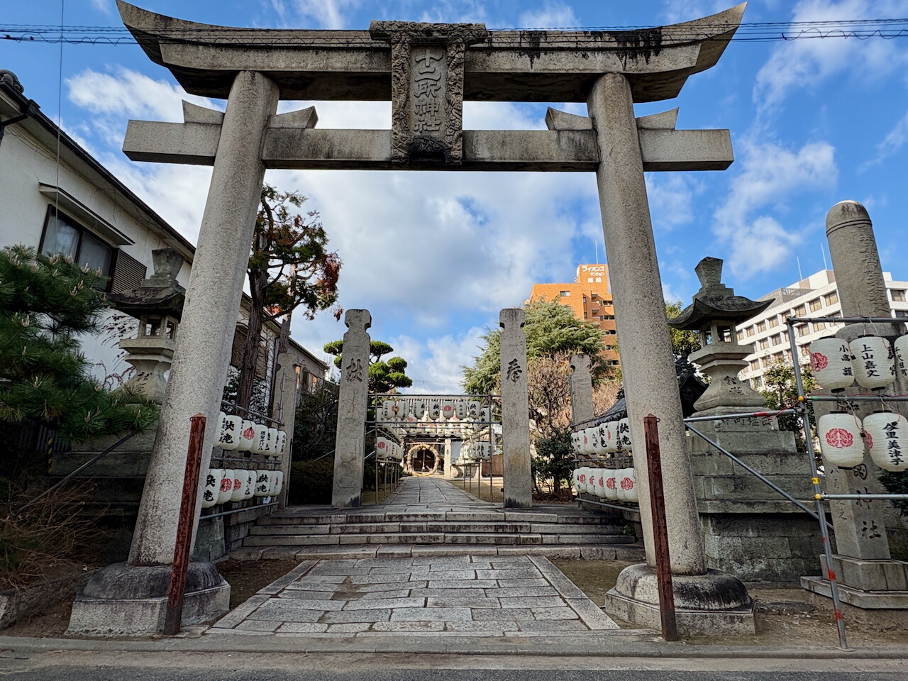 風が寒いので商店街を歩いて総社へ。