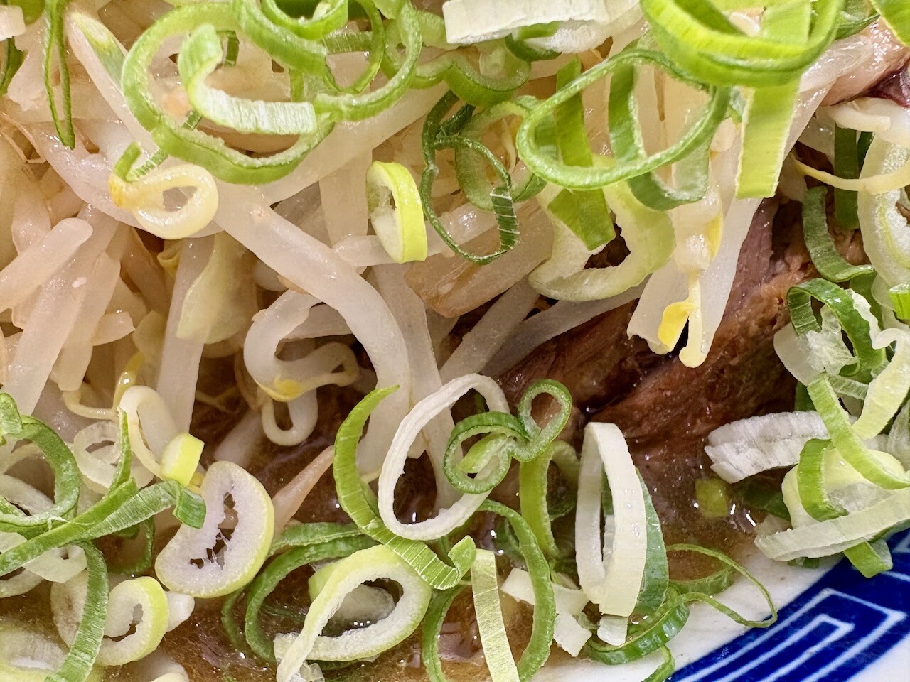 モヤシやニンニクを覆う山盛りの九条ネギ。