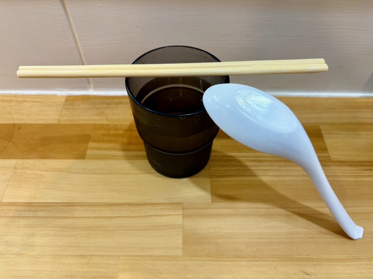 箸、レンゲ、水を最初に取って待つことに。