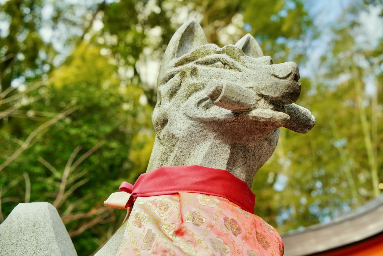 拝殿前には立派な彫りの狛狐が。